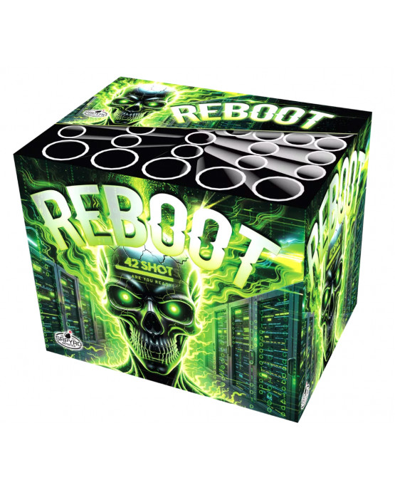 Kompaktní ohňostroj Reboot je brokátový set s barevnými konci. Tento ohňostroj do vzduchu vypálí 42 ran ráže 25-38 mm, směr výmetu je rovno vzhůru a do stran, celá show trvá 50 vteřin.Min.vzdálenost diváků od setu je 45m